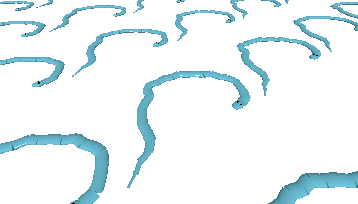 여러 물체가 유체를 통과하면서 작용하는 힘을 시뮬레이션합니다.